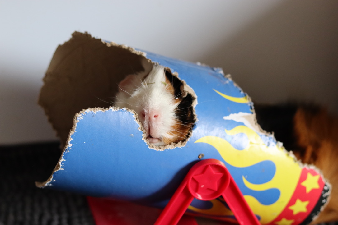 Kanonrøret fra Haypigs er utrolig populært hos marsvinene. Udover at kunne ligge i det og løbe igennem det (så det vipper), så er det lavet af pap, så de også får aktiveret tænderne. Rørene skal derfor udskiftes ind i mellem, da de bliver spist med tiden.
