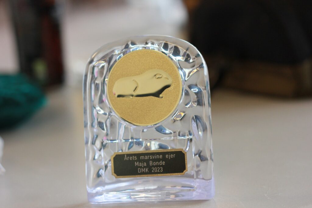Jeg blev samtidig kåret som årets marsvineejer 2023 i Dansk Marsvineklub for min hjælp og ekstra indsats til DMK